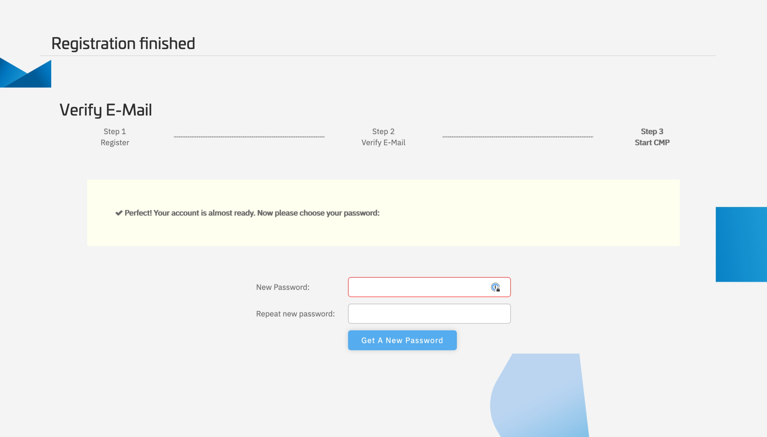 密码设置完成后,请您妥善保管密码,并点击”Get A New Password“按钮,以继续后续步骤;