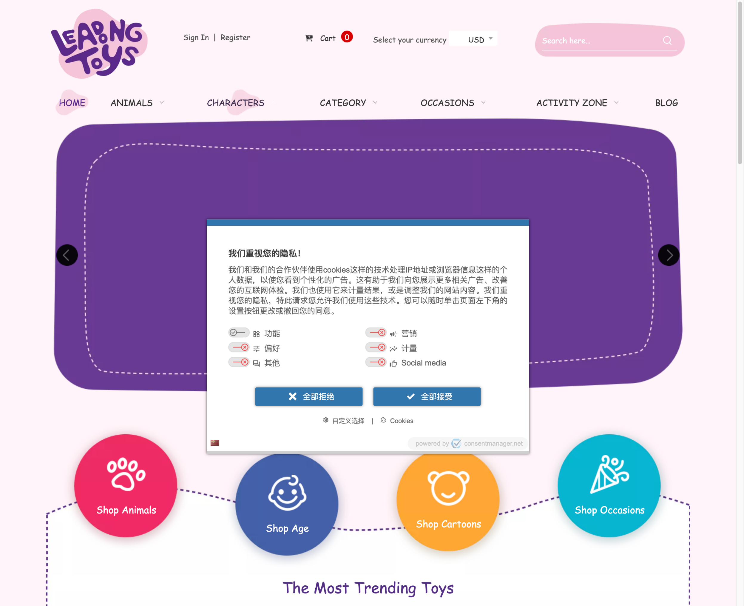 部署完毕后的CMP 的Banner将出现在网站中,例如:
